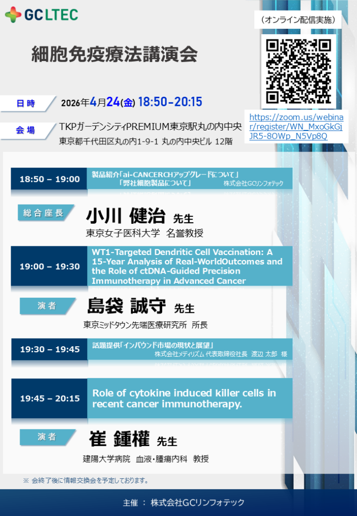 424日に「2026年 細胞免疫療法講演会」を開催いたします。
